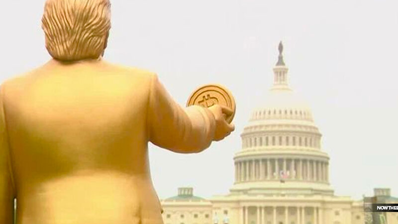 Giant Trump statue holding Bitcoin displayed outside US Capitol to mark Fed rate decision
